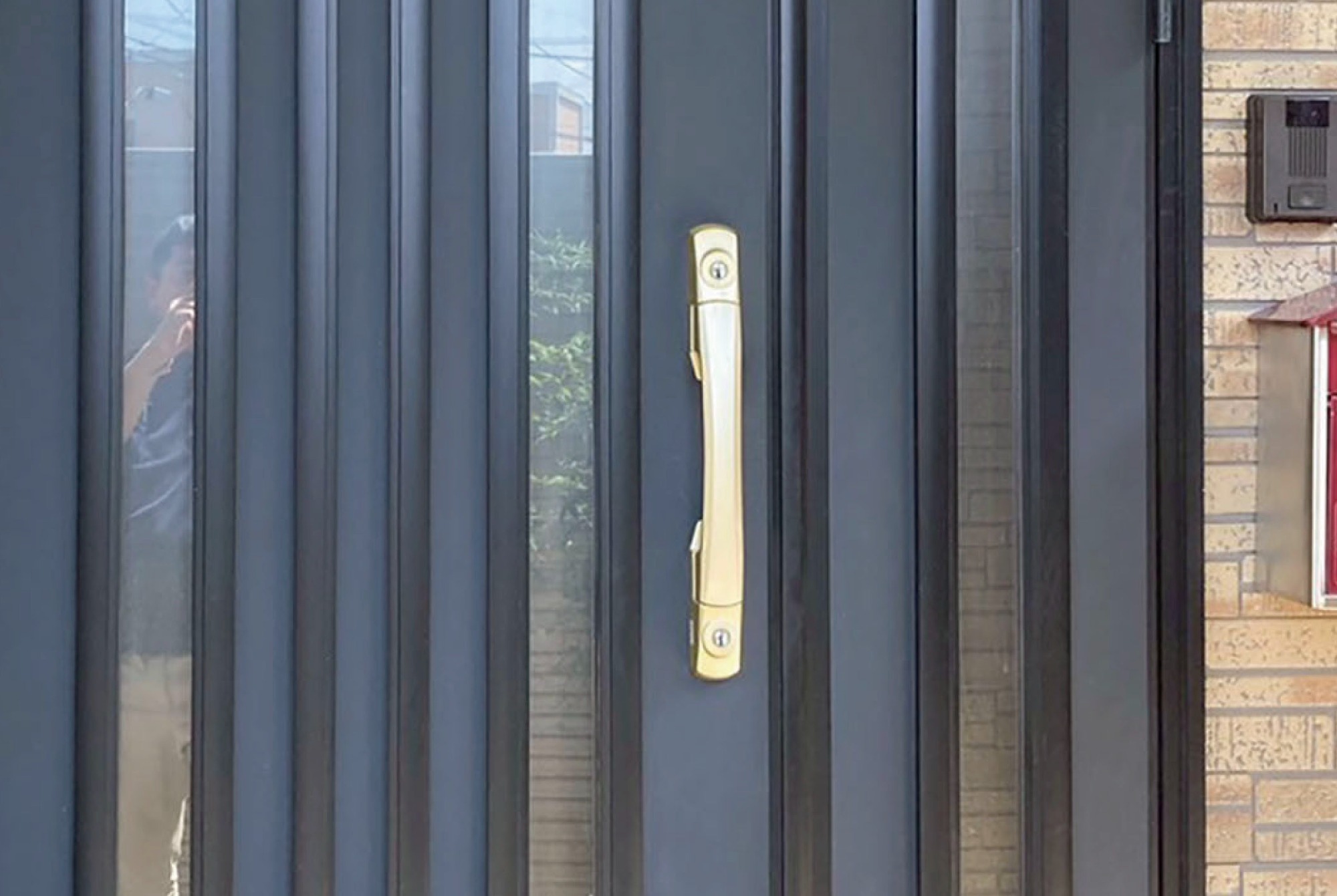 ご予算は、防犯断熱サッシに当てて、玄関ドアは把手と鍵を一新し、外観と使い勝手が改善できました。