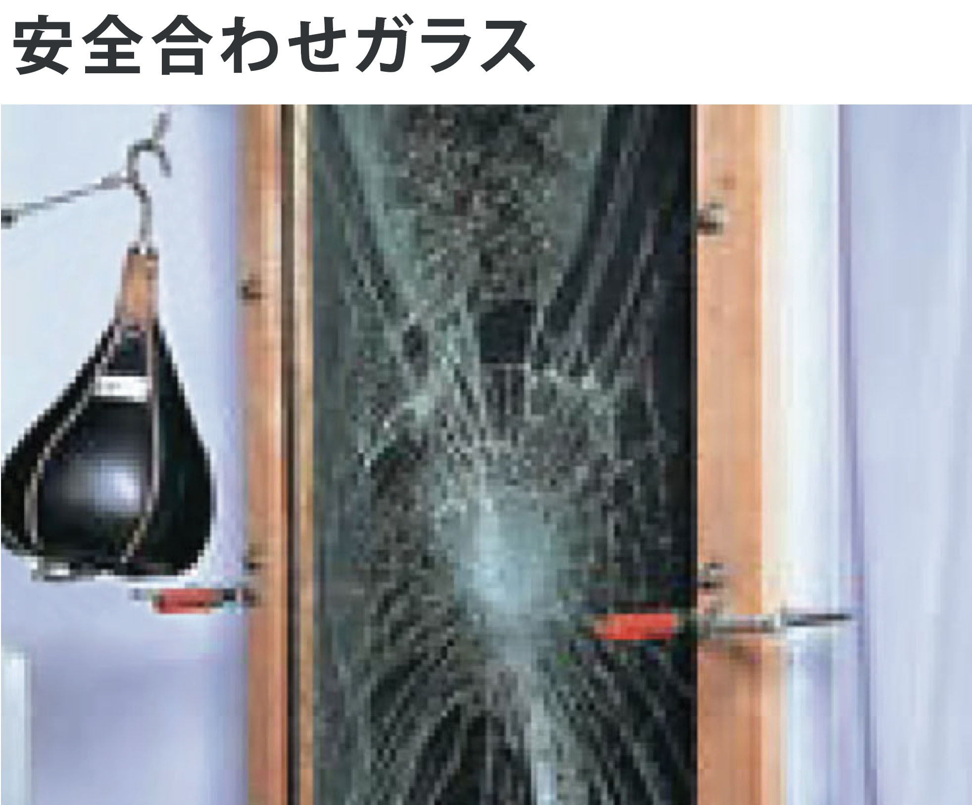 安全合わせガラスにすることで、ガラスが割られても貫通穴はあきませんので、優れた耐貫通性でこじ破りや打ち破りに有効になり、防犯機能が格段にアップします。