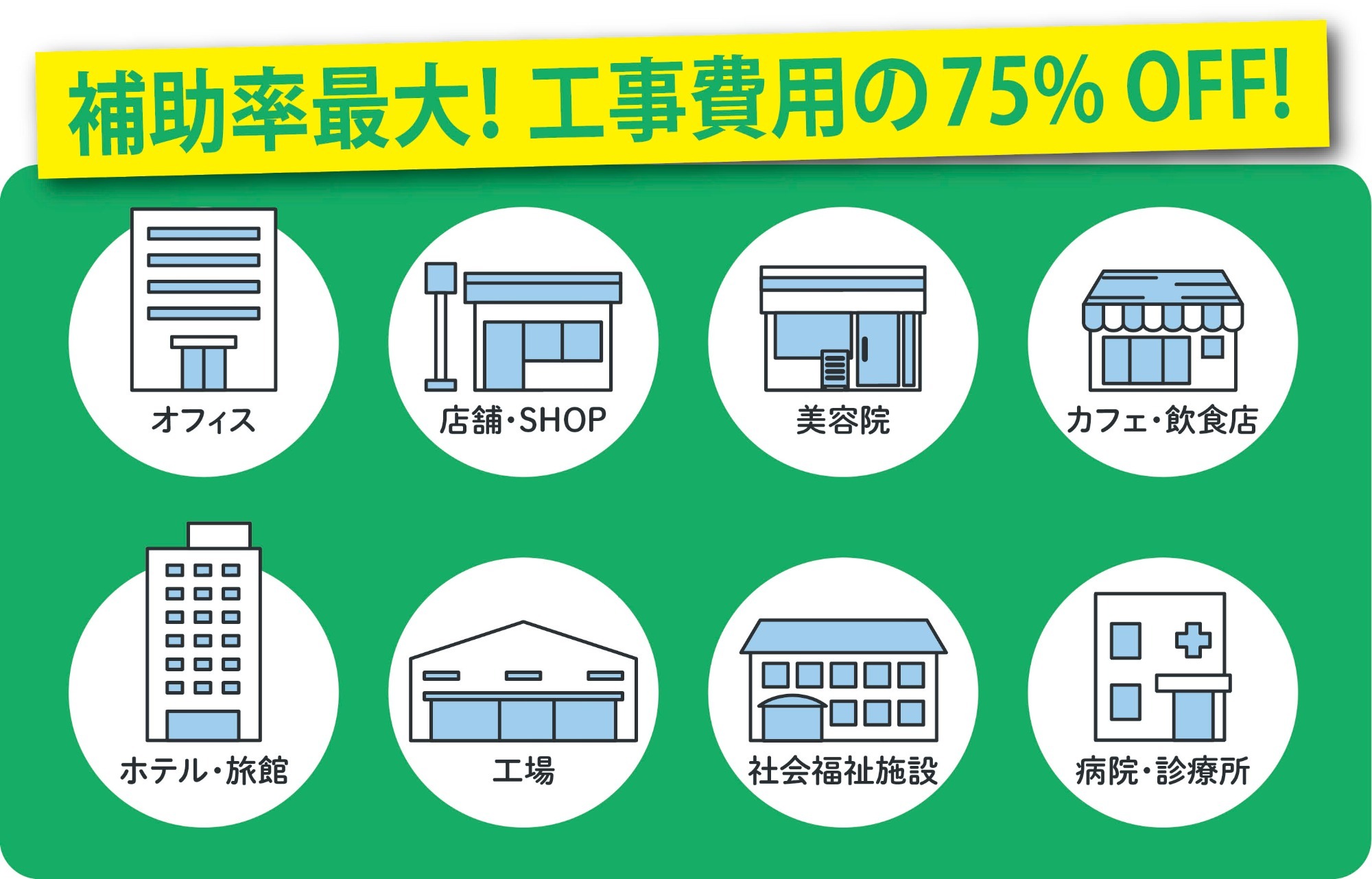 ①高効率設備(省エネ設備)(JIS規格(原則トップランナー基準)を満たす空調設備、換気設備、LED照明設備、冷蔵・冷凍設備、エネルギー管理設備、恒温設備、熱電供給設備、電気制御設備、窓等)