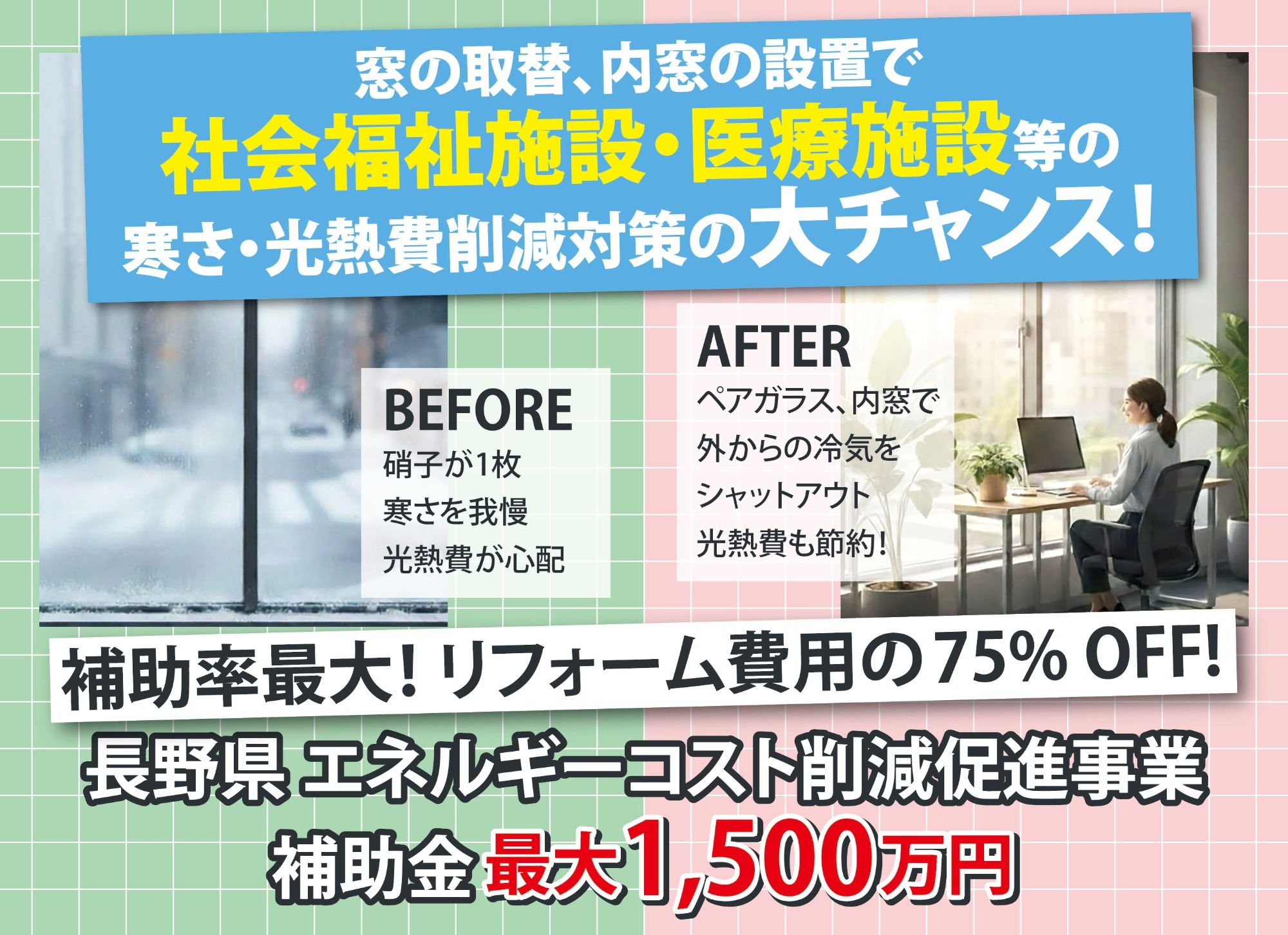 一昨年まで実施されました、長野県エネルギーコスト削減促進事業が始まりました。中小企業様や社会福祉事業者様が対象の補助金で、条件を満たせば前回より大きな補助金が活用できます。また、一度活用された事業者様も活用できるようになっています。
